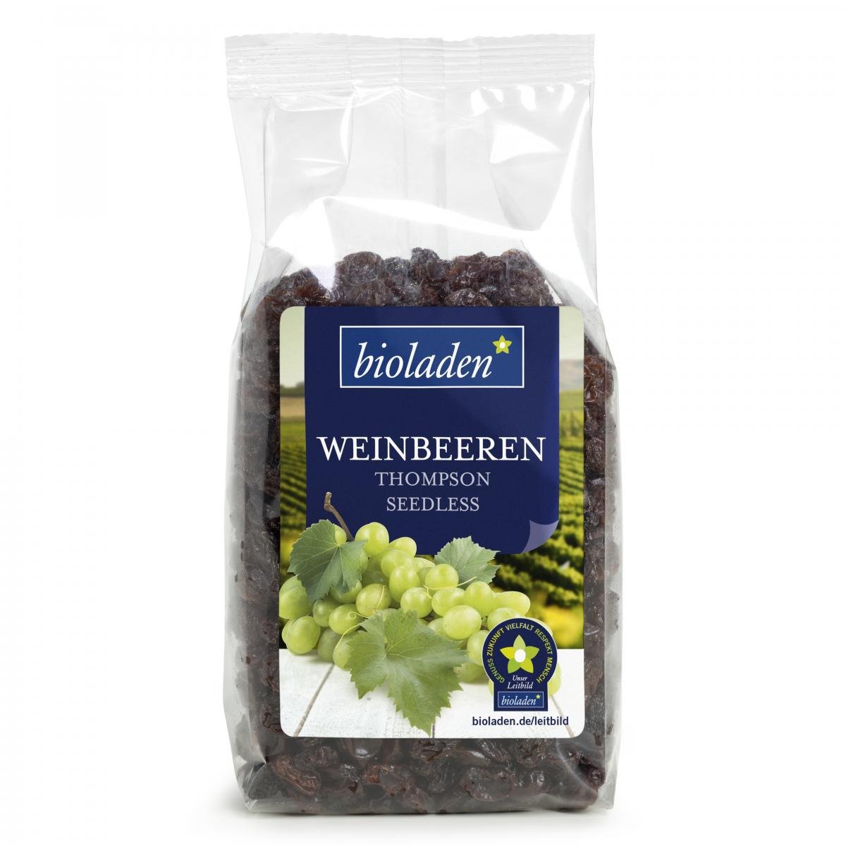 Unsere bioladen*Weinbeeren finden aufgrund ihres süß-saftigen Geschmacks in vielen Gerichten ihre Verwendung und eignen sich hervorragend als Snack für zwischendurch. (Sorte: Thompson Seedless, geölt)