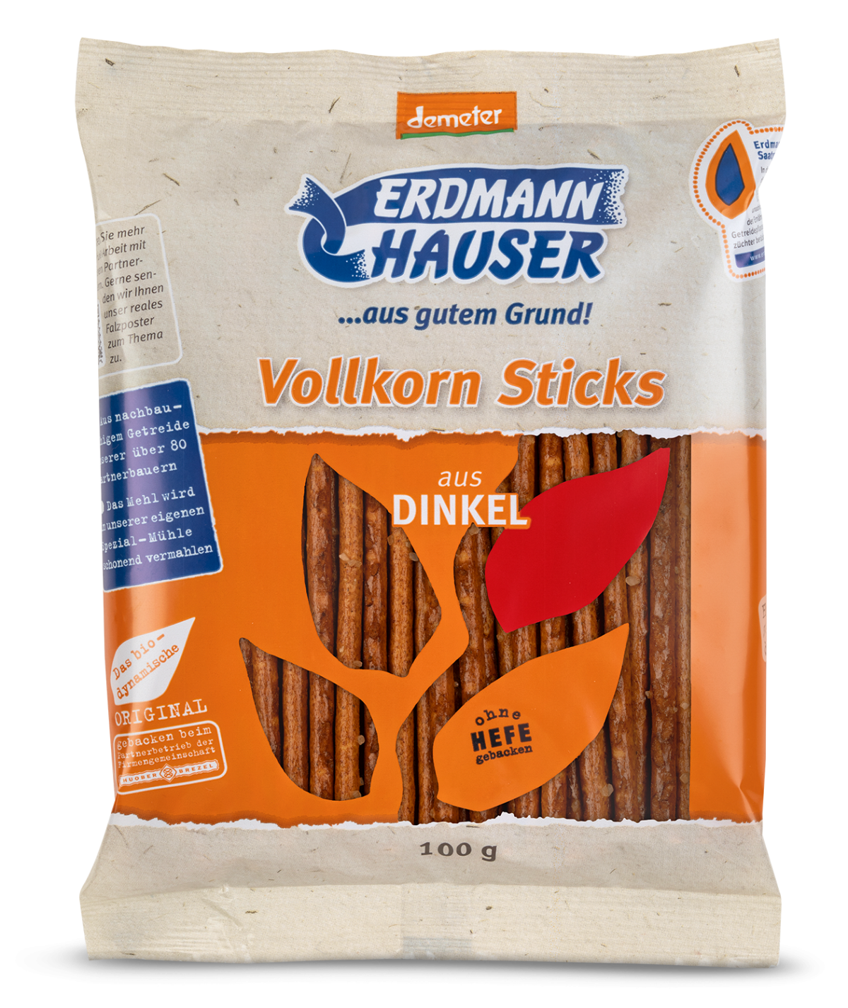 Dinkel aus biologisch-dynamischer Züchtung, frisch vermahlen in der hauseigenen Mühle und von unseren Bäckern zu köstlich knusprigen Sticks verbacken.