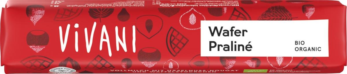 Vollmilchschokolade: Roh-Rohrzucker*, Kakaobutter*, VOLLMILCHPULVER*, Kakaomasse*, SAHNEPULVER*, MAGERMILCHPULVER*, Bourbon Vanilleextrakt*, Nougat-Füllung mit Waffelstückchen (50%): HASELNUSSMARK* 16%, Roh-Rohrzucker*, Kakaobutter*, VOLLMILCHPULVER*, Waffelstückchen* 2,5% (WEIZENMEHL*, Emulgator: Lecithine*; Sonnenblumenöl*, Meersalz), SÜSSMOLKENPULVER*, Bourbon Vanilleextrakt*.