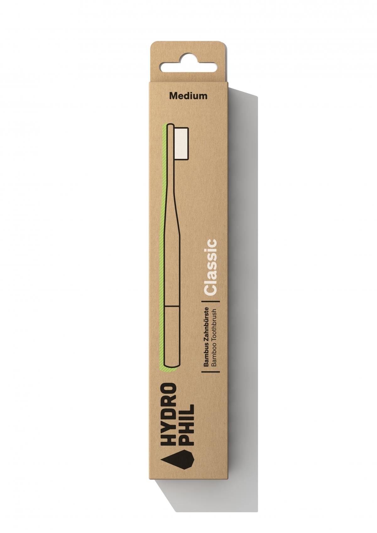 Unsere nachhaltige HYDROPHIL Bambus-Zahnbürste CLASSIC darf in keinem Badezimmer fehlen.