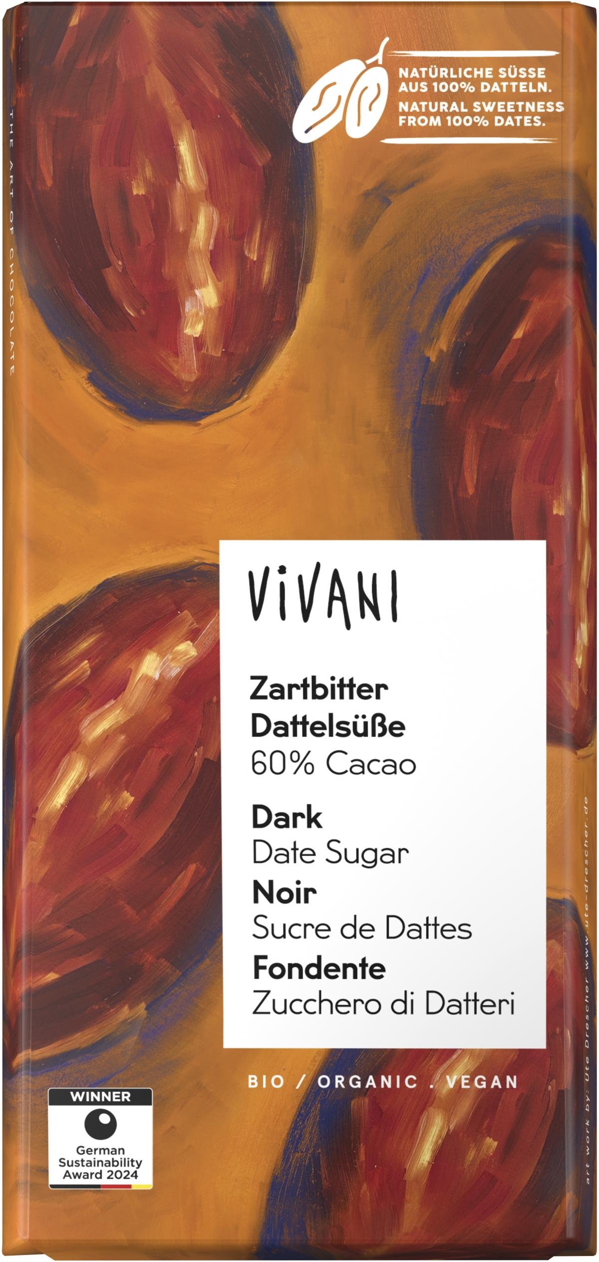 Datteln, gemahlen* (37%), Kakaomasse*, Kakaobutter*, Bourbon-Vanille*.